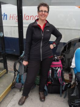 We left home for Inverness before lunch, thinking I might have some last minute panic buying to do. By the time we’d bought a hip pouch (as I wasn’t using my Pinnacle, I knew I’d miss the hip pockets. I have an OMM chest pouch, but I find this tricky to manoeuvre alone), looked at various lightweight mugs and tried on a few soft shells, it was lunch time, so we headed for Girvans. We still had loads of time, so went on a crockery hunt (for home), bumping into an old friend in Argos, like you do. The last hour and a half were hard to kill, coffee was taken at Starbucks before returning to the car for the pack, panic pee, (not in the car…) last minute purchase of zip lock bags and water, in case of travel sickness then making our way to the bus station. The other Challengers became apparent and David chatted to a couple as I bagged a seat on the bus, then we were off.