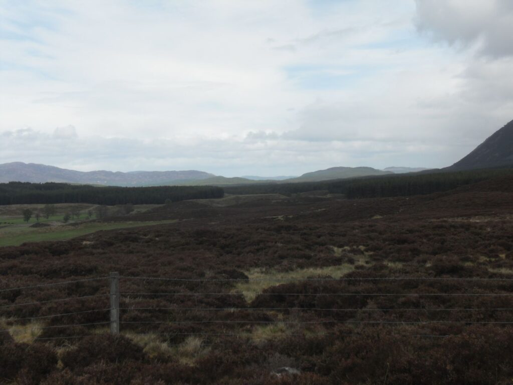 The Emsleys and Stuart ? left and I followed shortly after, taking the signed path up the side of Allt Garbh. This is quite a seriously boggy path and continues uphill for quite a way. I met Mike ‘The Cowboy’ again and another chap who turned out to be James Boulter. At the top, I trusted my instincts and memory and headed ‘left’. When the lochan came into view I was quite pleased with the decision. This is quite an easy track with lovely scenery and a feeling of remoteness. It did seem to take a long while to reach the forestry where I was expecting to find Cougie, but I found the foot and hoof prints and piles of horse droppings reassuring that I was still headed in the right direction.