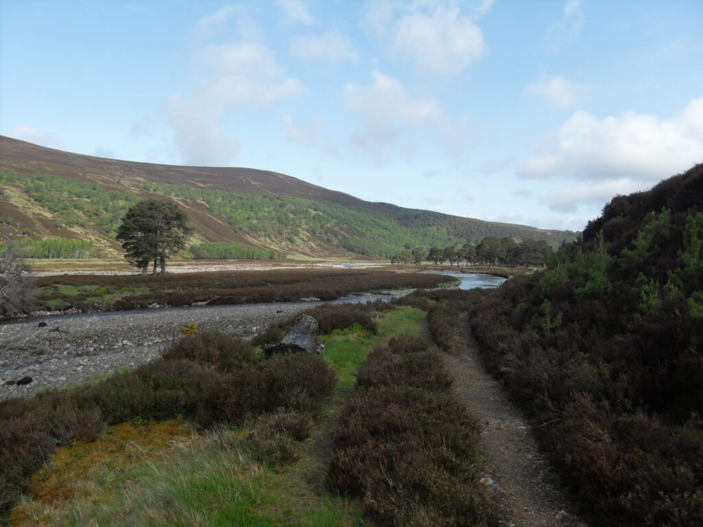 Onwards until, surprisingly, the temperature suddenly dropped. We reached the dangerous building at NO 002 869 where we found Bill had already pitched. Ann, Alvar and Emma all decided to pitch, but after so much mincing, my legs were glad to be stretching on the LRT, so I elected to continue. I’d already decided that I was unlikely to stop at White Bridge as planned, which was lucky as I totally missed it when I crossed it! I continued on. I almost leapt off the hillside as a chap on a bike approached me from behind and spoke, but managed to regain my composure for a brief chat when he told me we weren’t far from Linn of Dee. Mar Lodge was within reach, so on I went.
